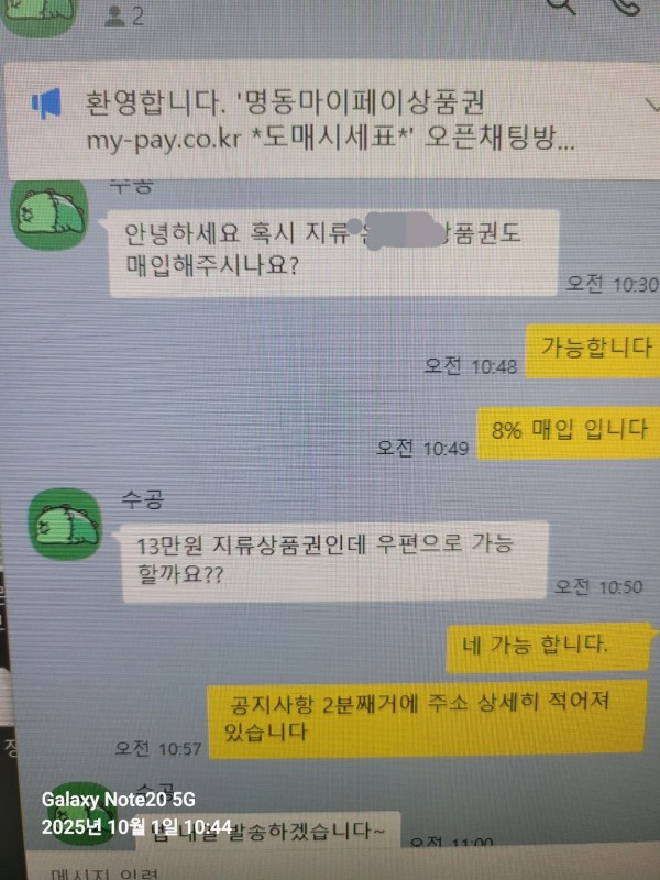 명동마이페이상품권 010-9808-5438 카톡 문자