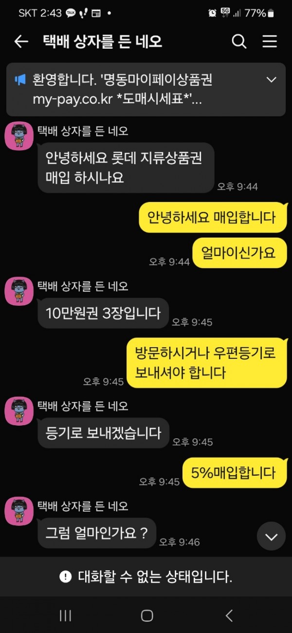 명동 마이페이상품권 010-9808-5438 카톡, 문자