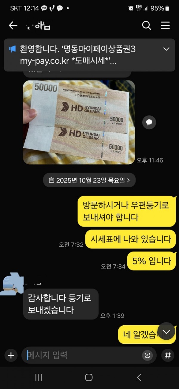 서울시 강서구 화곡동 현대오일뱅크 주유권 우편 배송거래