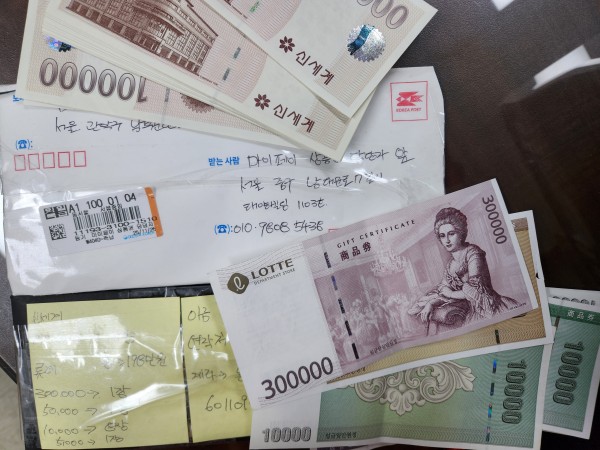 우체국 택배로 상품권을 보내주셔서