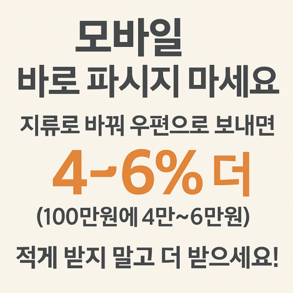 지류로 바꾸면 100만원당 최대 3~ 4만원 더 받습니다!