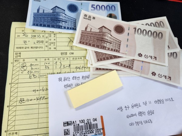 경북 칠곡군 양목면 복셩3길 고객님 신세계 상품권 우편 거래 완료