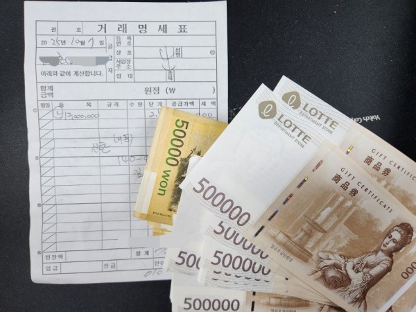 롯데백화점 상품권 구매 해 가셨습니다.
