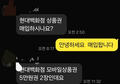 이마트·롯데 모바일상품권 카톡 문의 후 즉시 거래 완료…