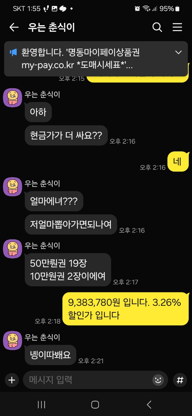 명동마이페이상품권 010-9808-5438 카톡 문자