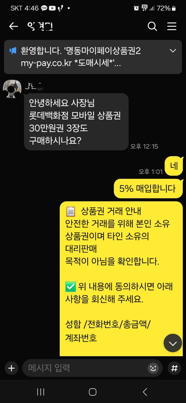 명동마이페이상품권 010-9808-5438 카톡 문자