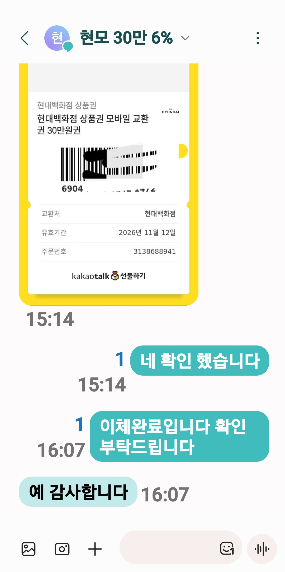 현대 모바일 상품권 바코드 30만원 거래 안료