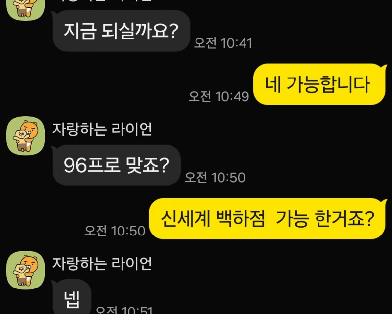 카카오톡으로 신세계백화점 모바일 상품권 100만원권 매도 가능 여부를 문의 주셨습니다.카톡으로 안내 드린 후, 페이지온에서 발급받은 신세계 상품권 모바일 바코드를 전달해 주셔서 신세계백화점 방문하여 키오스크에서지류 상품권으로 교환 진행하였습니다.( * 롯데 백화점 모바일 상품권 1백만원 4% 매입 )교환 완료 후 고객님께 정산 금액을 이체로 처리해 드렸습니다.문의부터 정산까지 진행된 거래였습니다. 이용해 주셔서 감사합니다.이용자 후기마이페이 명동상품권 010-9808-5438 카톡 문자 - 명동마이페이 상품권 홈페이지 상세 안내 -방문시 찾아오는 위치 안내 :https://my-pay.co.kr/bbs/board.php?bo_table=notice&wr_id=22우편등기로 판매하는 방법 안내 :https://my-pay.co.kr/bbs/board.php?bo_table=notice&wr_id=6후기+댓글+소통방 이용안내 :https://my-pay.co.kr/bbs/board.php?bo_table=review자주하는 질문 안내 :https://my-pay.co.kr/bbs/board.php?bo_table=faq전국 우편 등기 거래 후기 안내 :https://my-pay.co.kr/bbs/board.php?bo_table=issue오시는길 위치파악 안내:(네이버길찾기)https://my-pay.co.kr/bbs/content.php?co_id=location명동씨티원 상품권 찾아오는길 상세안내 :https://my-pay.co.kr/bbs/board.php?bo_table=notice&wr_id=22실시간상품권시세표 안내 :https://my-pay.co.kr/sub/price.php