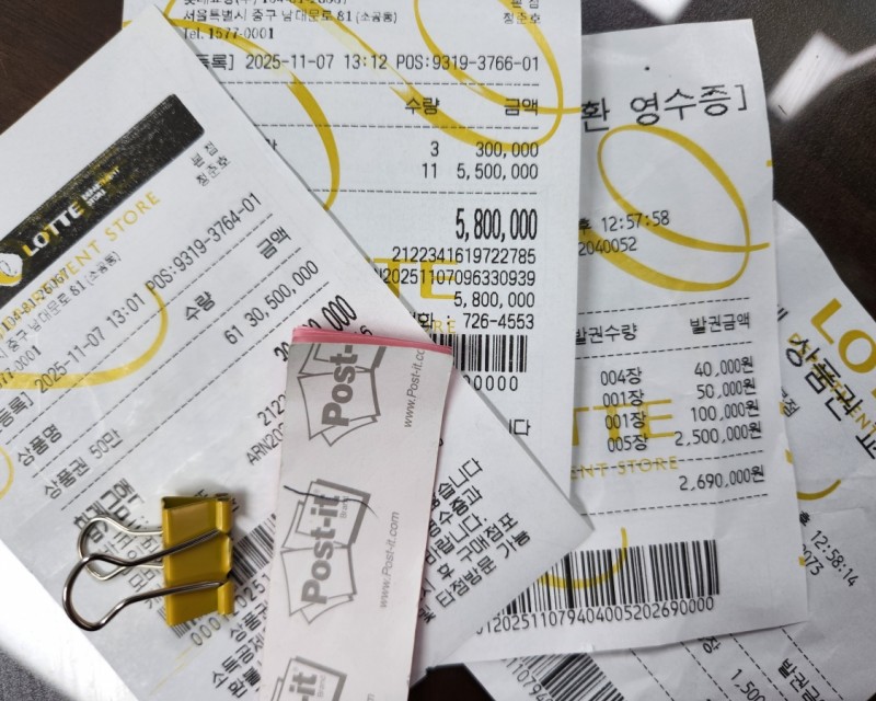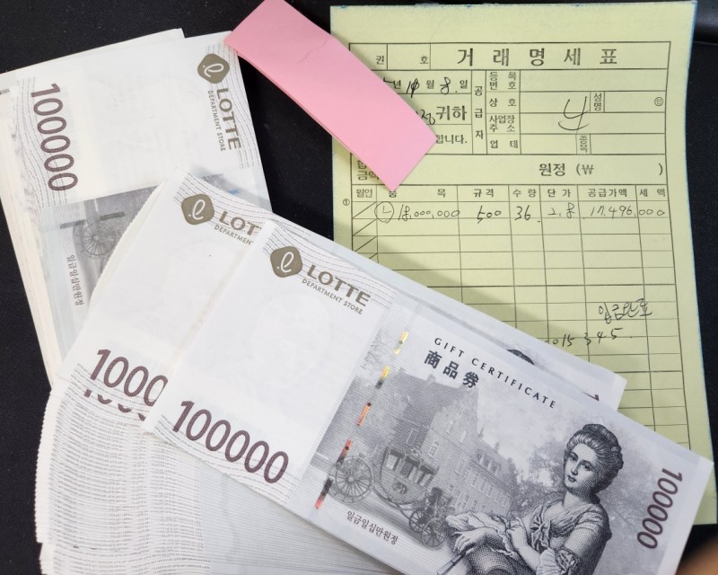 총 1,550만 원 상당의 롯데백화점 상품권을 구매해 가셨고요.